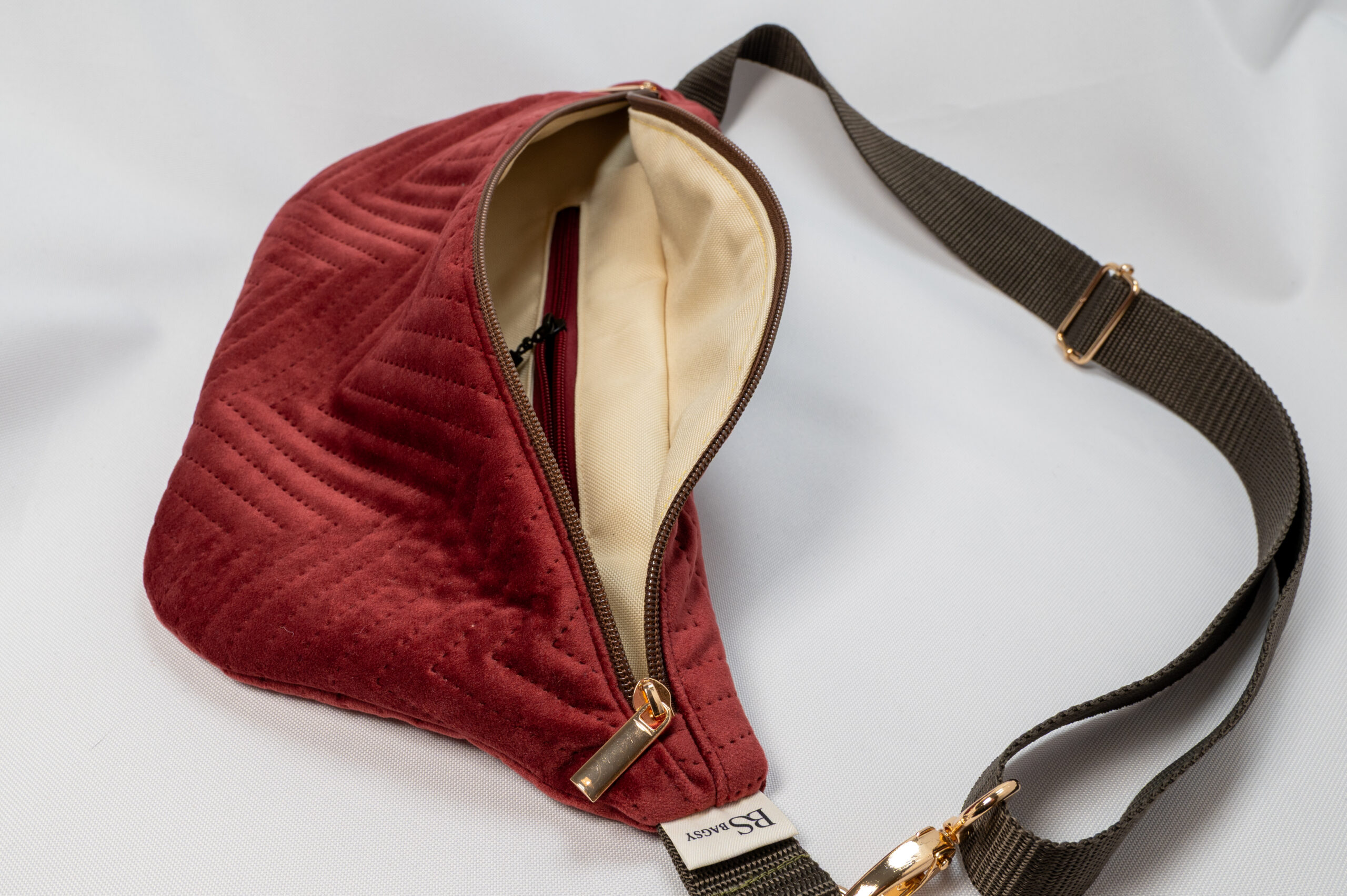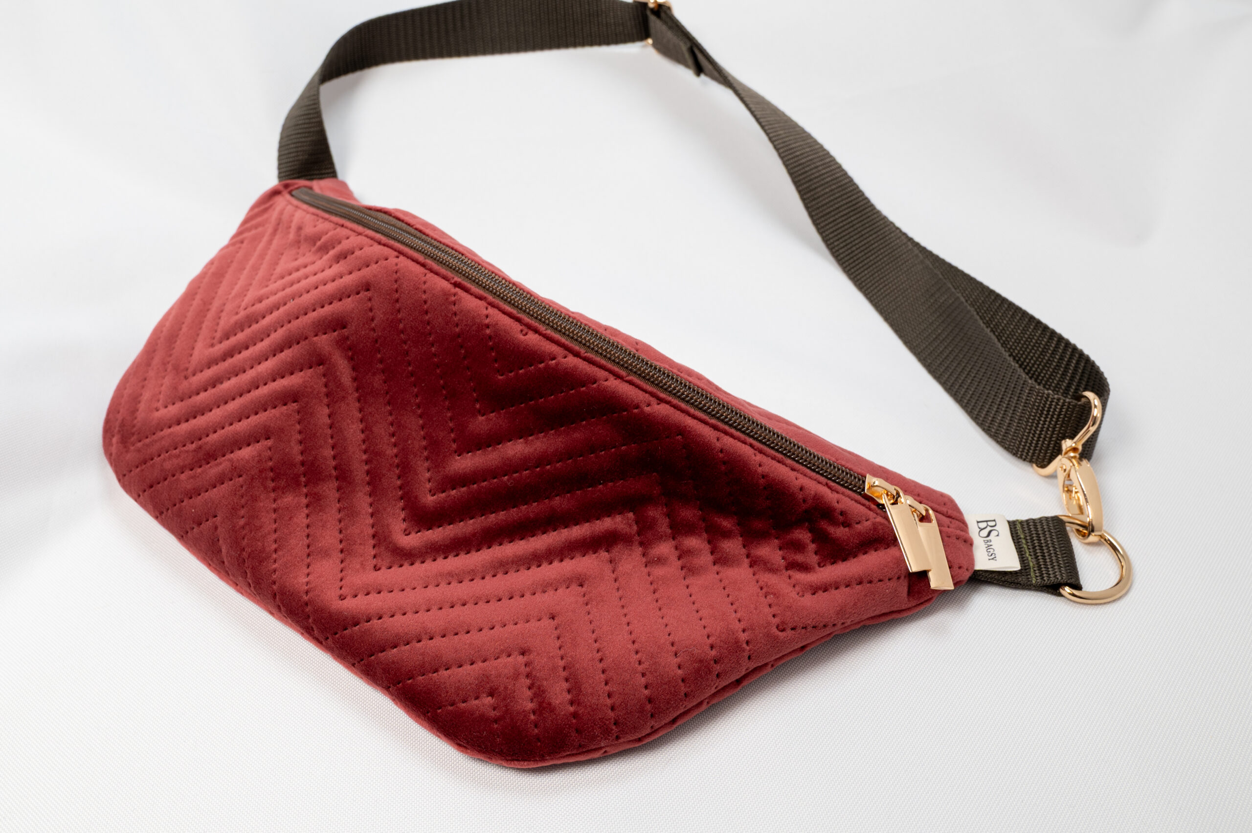 Ręcznie robiona nerka z pikowanego weluru – eleganckie bordo w luksusowym wydaniu.