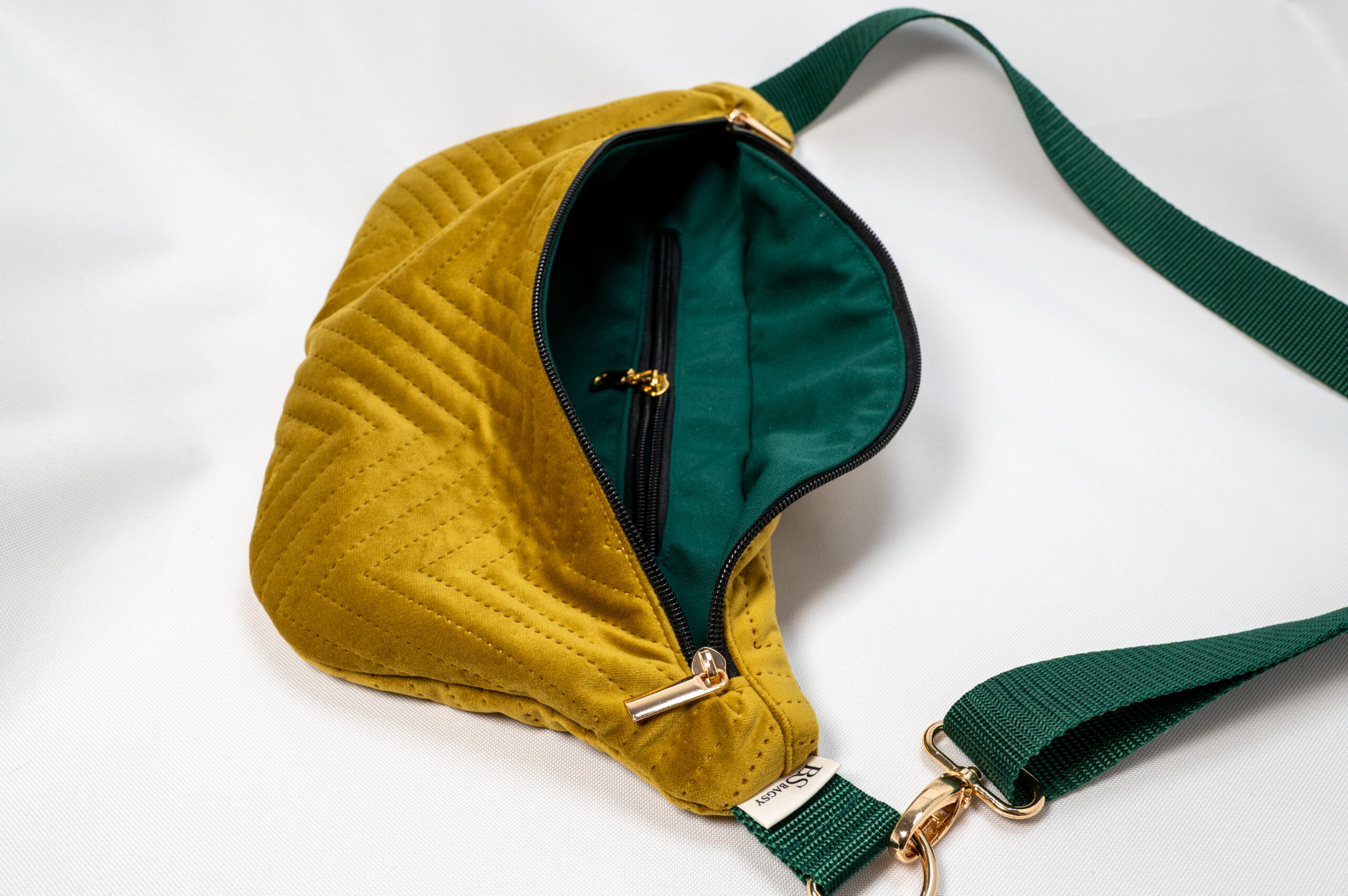 Ręcznie robiona nerka z pikowanego weluru – musztardowy akcent w nowoczesnym, energetycznym wydaniu.