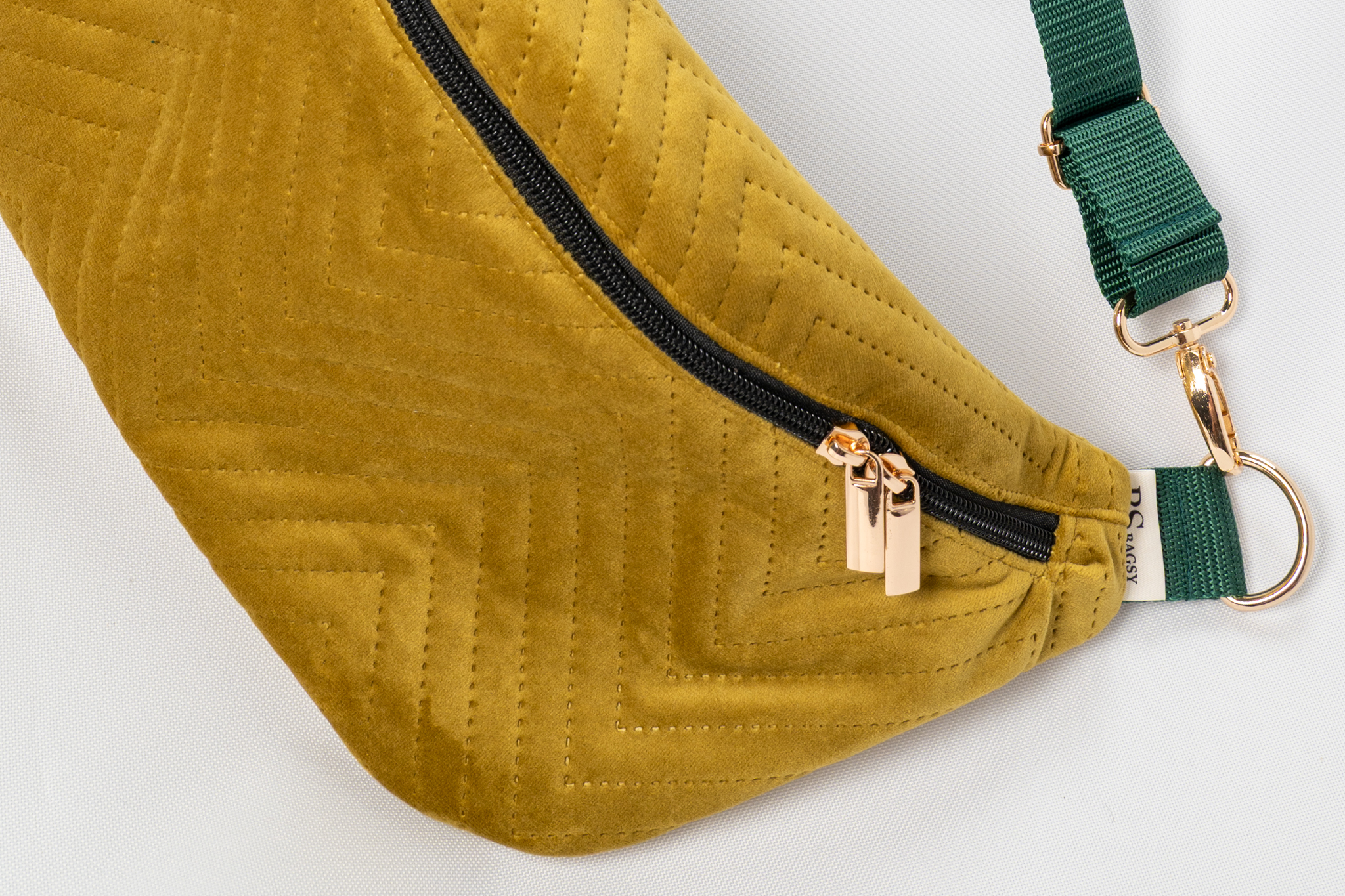 Ten model zachwyca nie tylko kolorem, ale także strukturą. Pikowany welur o geometrycznym wzorze sprawia, że nerka jest nie tylko miękka i przyjemna w dotyku, ale również przykuwa uwagę eleganckim, trójwymiarowym efektem. Musztardowy kolor nadaje jej charakteru i ciepła, a kontrastujący czarny zamek oraz zielony pasek tworzą świeże, modne zestawienie.