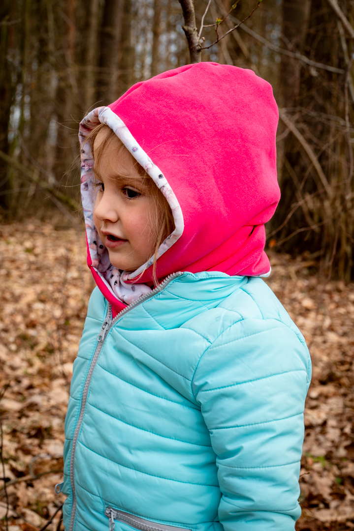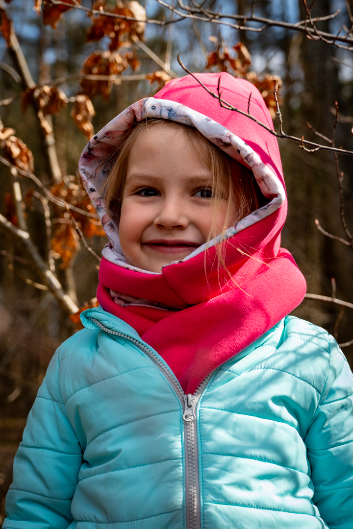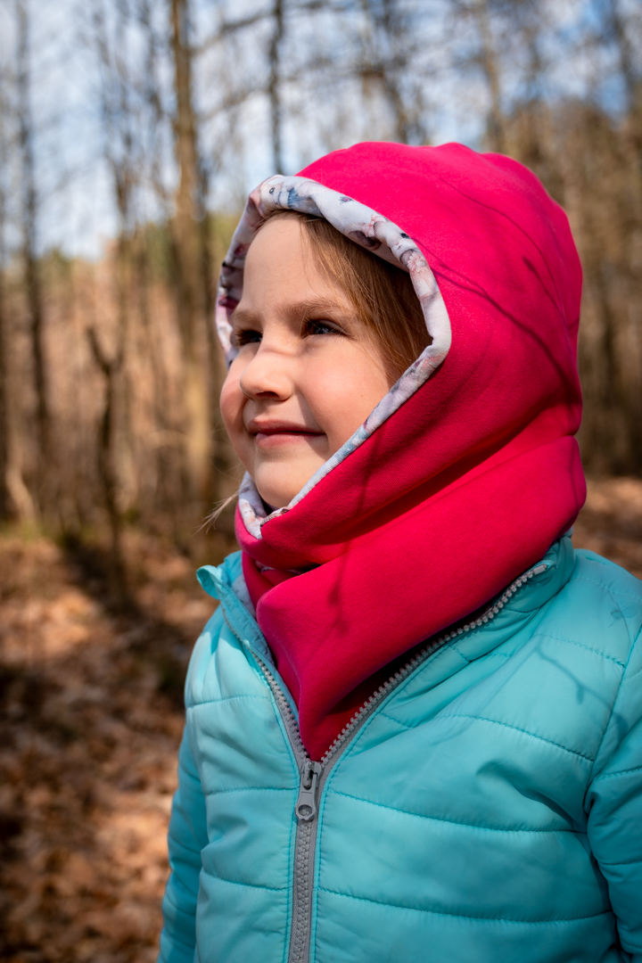 Kapturoszalik dziecięcy w soczystym, energetycznym odcieniu różu z uroczą podszewką „Balet króliczków” to wyjątkowy dodatek na chłodniejsze dni. Połączenie kaptura i szalika w jednym elemencie skutecznie chroni głowę, uszy oraz szyję dziecka przed zimnem i wiatrem, zapewniając jednocześnie wysoki komfort noszenia.